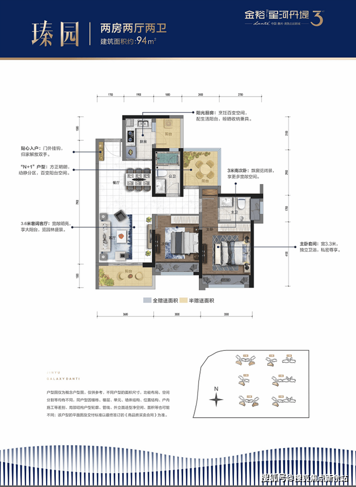 一从轴、双高铁、四轨道、双高速、三干道,正在惠州高铁北坐新城绽放优良教育之花△八中结果图【项目户型图】建面约94㎡户型2+1房 2厅2卫建面约106㎡户型2+1房 2厅2卫建面约126㎡户型3+1房 2厅2卫