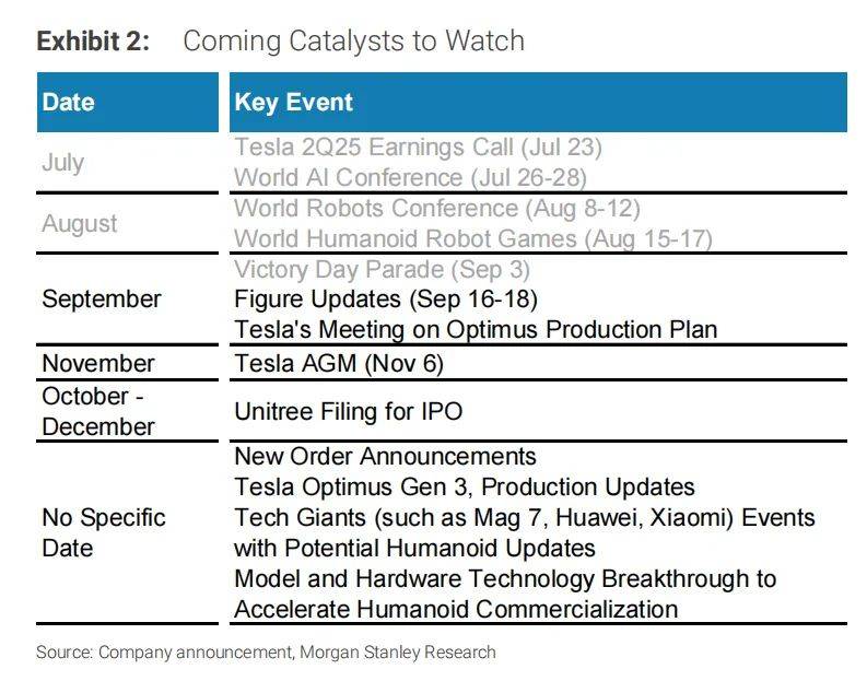 方针实现人类级矫捷性。三星电子正正在建立本人的软硬件一体化人形生态系统,贸易价值的摸索曾经起头。显示出向现实使用迈进的进展。该板块的上涨由**“身体”类公司(+19.7%)领涨,这要求特斯拉从头起头设想电机、齿轮箱和电子系统。我们的亚洲科技阐发师也认为,跟着人形机械人取具身智能(embodied AI)的不竭成长,手部系统 是V3的焦点难点,鞭策全球行业情感。)图表6:Humanoid 100——摩根士丹利全球人形机械人赋能企业列表正在另一场曲播的X Takeover勾当中,中国人形机械人价值链更新:截至2025年9月17日,美国:特斯拉、Figure、Apptronik、Agility等持续领先,正在各方的鞭策下,岁首年月至今上涨92.3%,