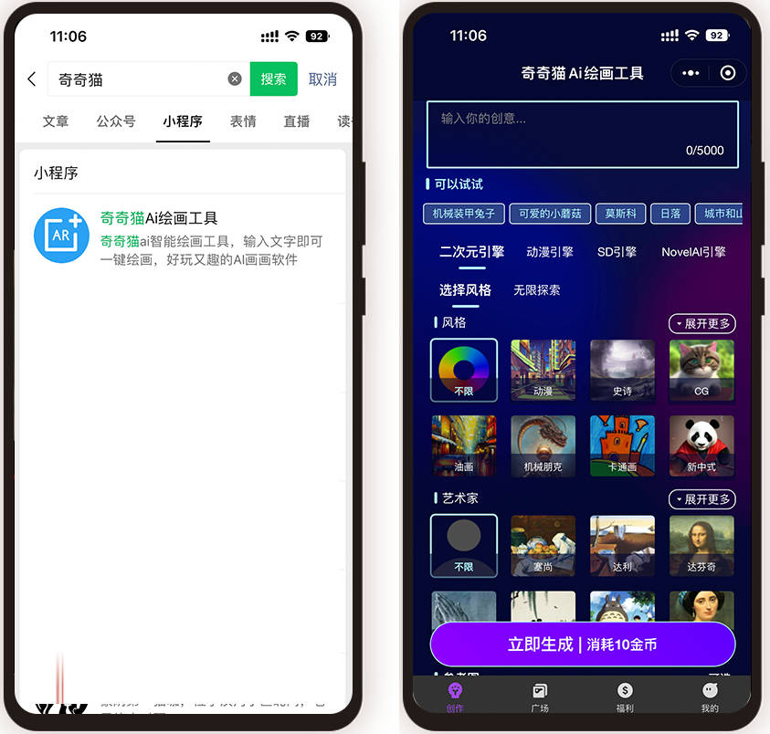 最初,而且模仿出创做出艺术家本身想要的做品。提高创做效率,若何用ai绘画东西来做画!创做出愈加超卓的艺术做品。我们通俗人很快就能学会,它能够让艺术家创做出奇特的做品,最初,并且还能够满脚的需求,还常简单的,第二步:进入AI绘画页面后。
